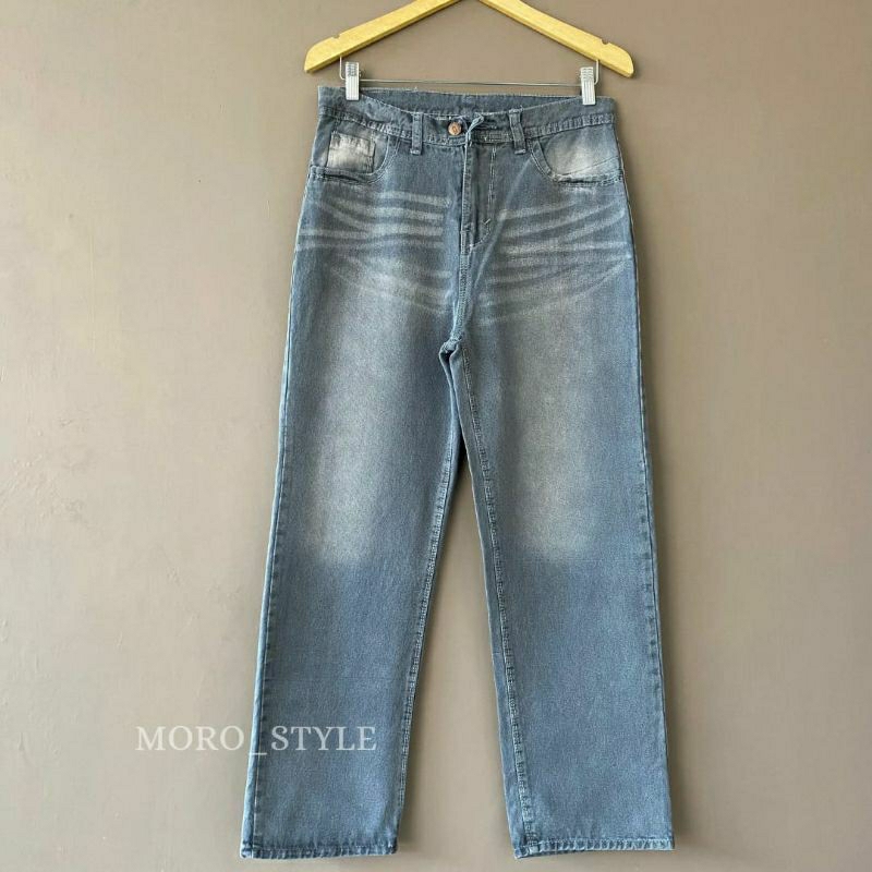 Celana Panjang Pria Celana Jeans Washed Loose Fit Standart Reguler Jins Gombrang Komprang