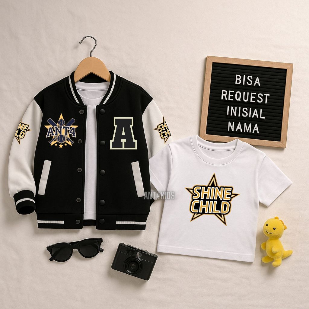 Setelan Jaket Baseball Anak Laki-laki Perempuan Kaos Custom Huruf Usia 2-12 Tahun