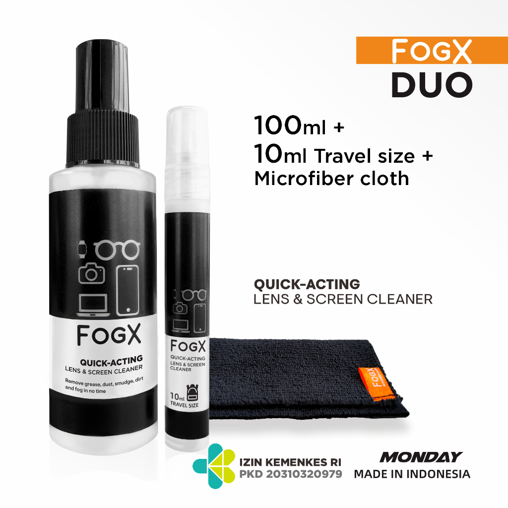 Cairan Pembersih Kacamata Fogx Duo Pembersih Layar Hp Lens Cleaner 100ml + 10ml Travel Size