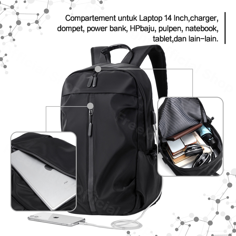 Freeknight Tas Ransel Backpack Fashion Tas Punggung Sport Unisex Tas Laptop USB Charge Tas Travel Tas Sekolah Polos TR70