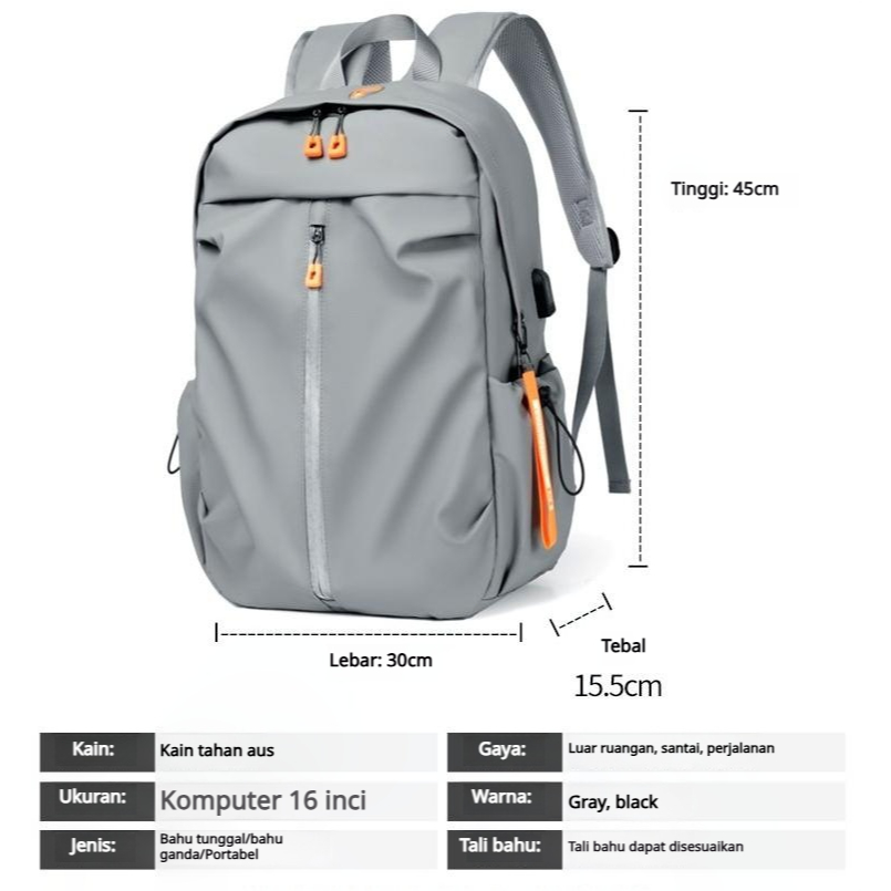VOYAR Tas Ransel Backpack Fashion Tas Punggung Unisex Tas Laptop USB Charge Tas Travel Tas Tahan Air
