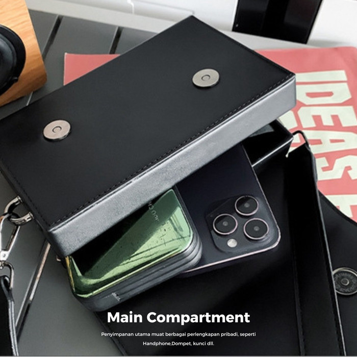 Tas Selempang Kulit Pria Wanita el Kotak Bahan PU Leather Leather Bag Import T 0300 LB