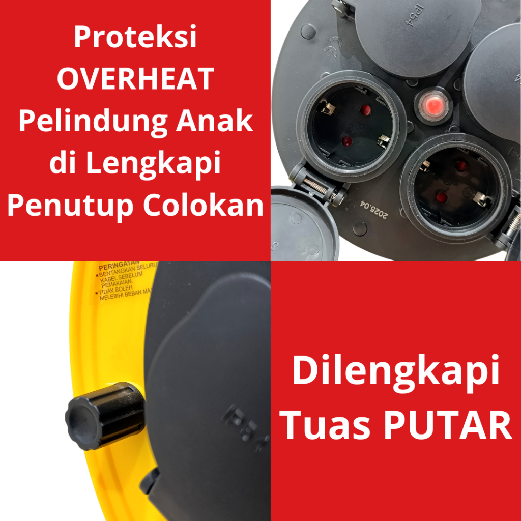 Kenmaster Kabel ROLL 25 Meter ( SNI ) Box Kabel Colokan Listrik Stop Kontak 4 Lubang Kabel Terminal Gulungan