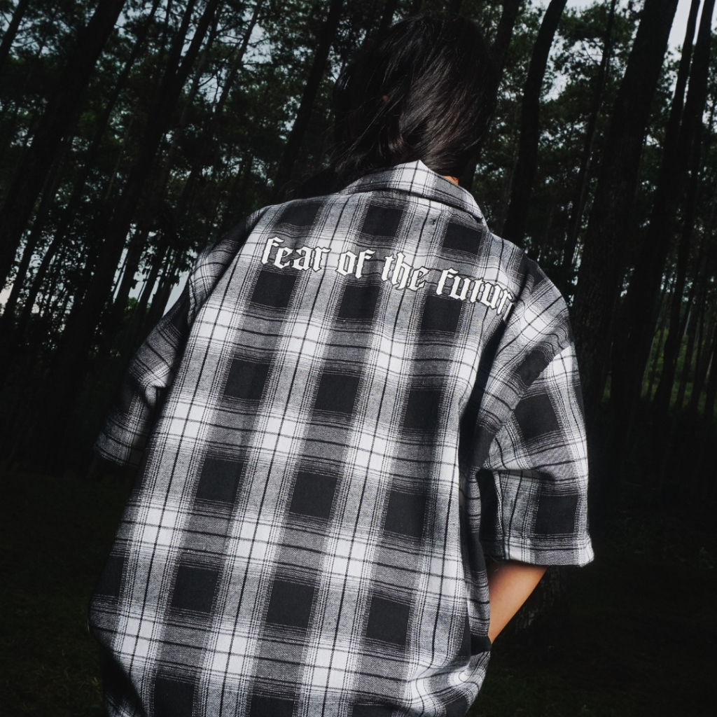Convergent Kemeja Flannel Boxy Pria Wanita Lengan Pendek