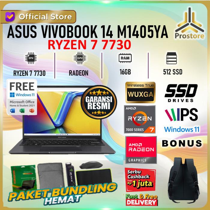 Asus Vivobook 14 Oled M1405Ya Ryzen 7 7730 Ryzen 5 16Gb 1Tbssd W11+Ohs - Ips-R5-16/512, Laptop