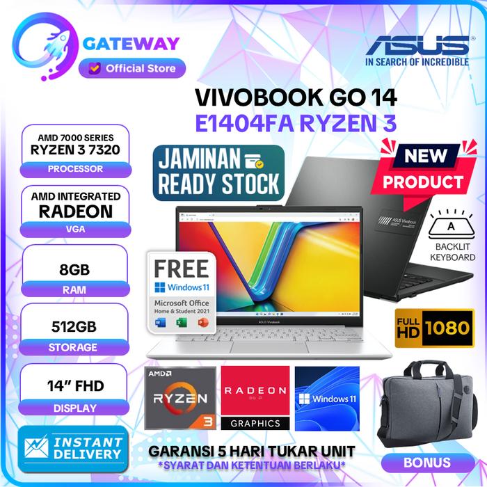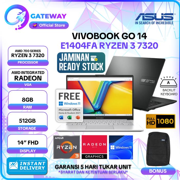 Asus Vivobook Go 14 Ryzen 3 7320U 8Gb 512Gb Ssd Windows 11+Office 14.0" Fhd -E1404Fa -Laptop Sekolah/Kerja/Kuliah - Non