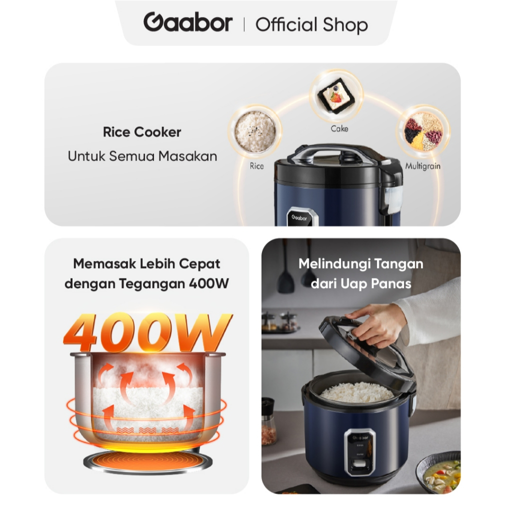 Gaabor Rice Cooker 2.2 Liter Magic Com Penanak Nasi Low Watt 400W Anti Lengket / RC50M-BE01A