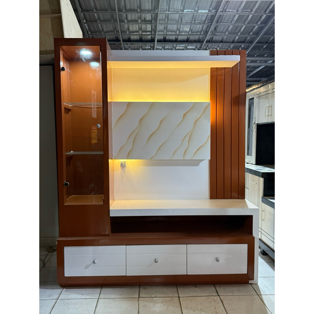 buffet tv minimalis BUPET TV PARTISI BACKDROP LAMPU LED ukuran 160x46x190 bahan multiplek terlaris