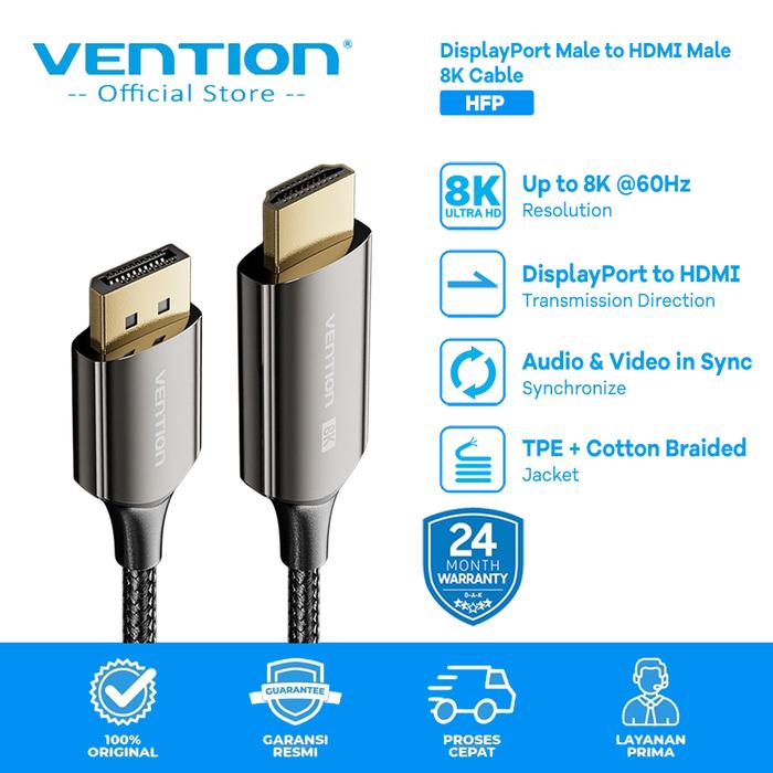 Vention Kabel Converter Display Port (Dp) Male To Hdmi Male Fhd 4K - Hfp 8K 60Hz, 1.8 Meter