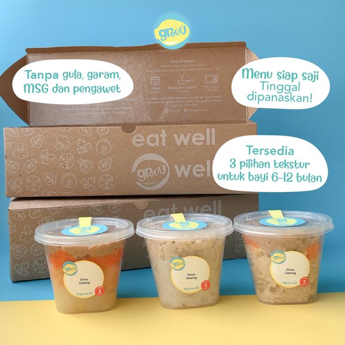 Grouu - Makanan Bayi - Ketring MPASI / Puree Bayi - Alami, No MSG, Gula, Garam - New Packaging