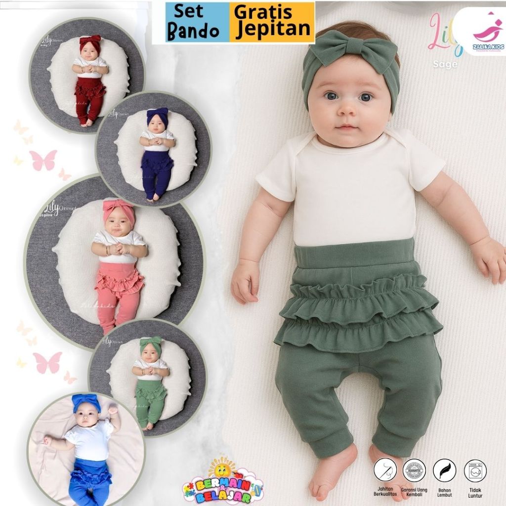 Baju Bayi Perempuan Newborn 0-20 Bulan Setelan Bayi Lilly + Bando Zalira Kids One set Baby Girl / Setcel Bayi Cewek / Hadiah Bayi Baru Lahir