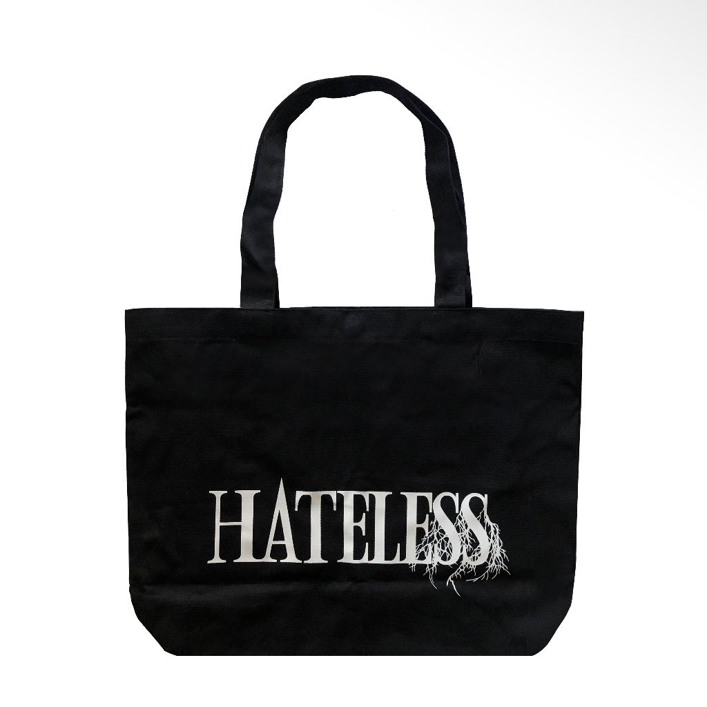 Totebag Hitam Kanvas Rooted Hateless 45x33 Cm