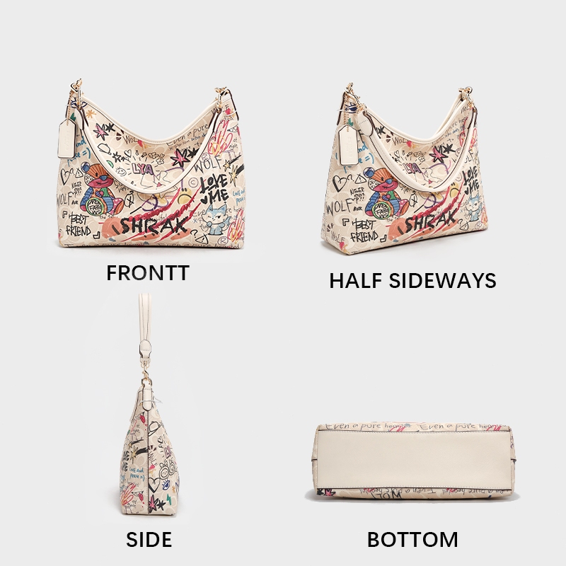 FOXLOVER Tas Tote Wanita Koleksi Grafiti Desain Luas Stylish dan Tahan Lama
