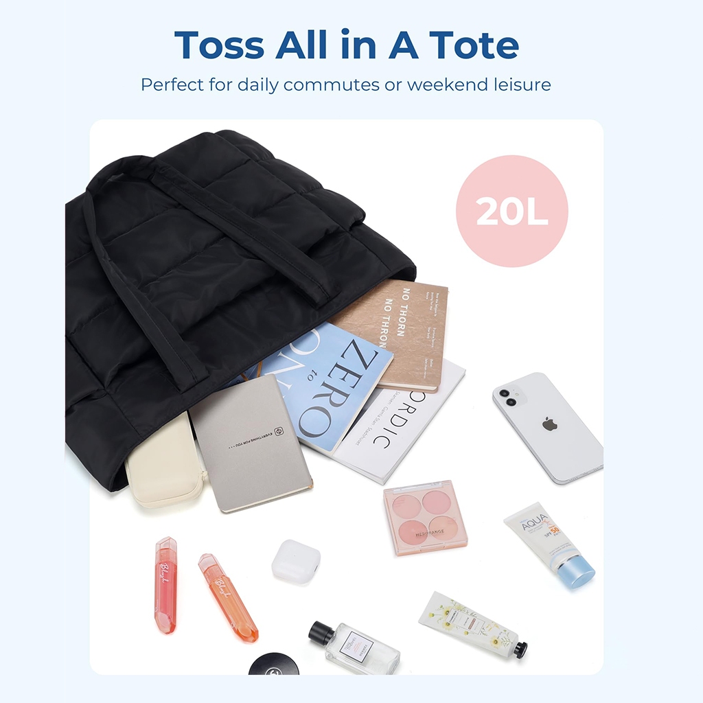 BAGSMART Tas Wanita Tote Bag Ringan Puffy Tas Kuliah Tote Bag for Travel Beach The Bubble