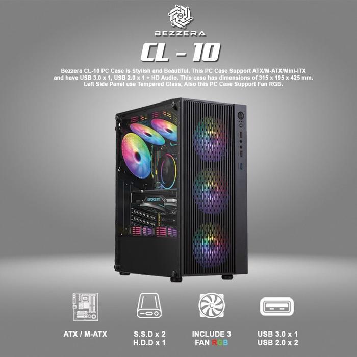 Casing Pc Power Up Raptor Sentinel Mid Tower Atx With 3 Fan Case Rgb - Bezzera + 3 Fan