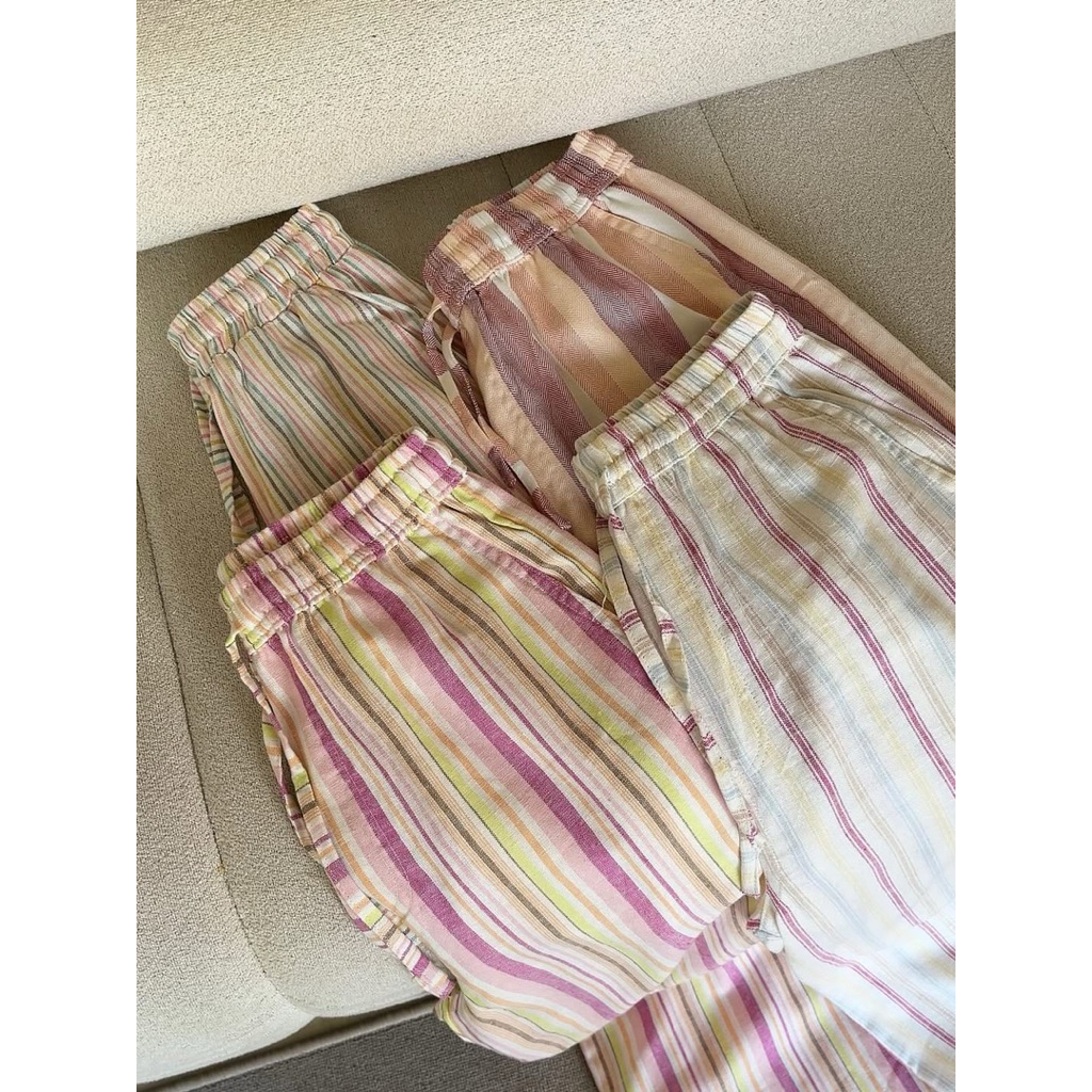 Celana Linen Wanita Motif Garis | Loose Baggy Pants Kulot Kantor Santai Boho Style – Stripes Korea Look