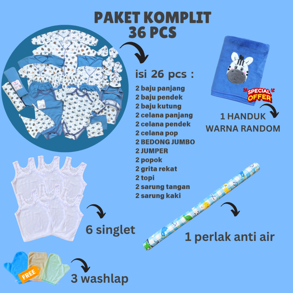 PAKET 36 PCS Baju Celana Bayi Hemat Terkomplit Bayi Baru Lahir Paket Hemat Brojol Baby Handuk Perlak Singlet Paket Komplit Bayi Baru Lahir Lengkap Kado Lahiran