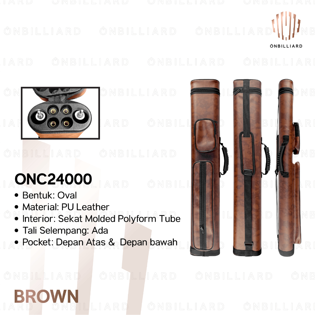 ONcase Tas Stick Billiard 2x4 Cue Case Billiard PU Leather 2 Butt 4 Shaft Hard Case 6 Lubang Pipa dan Kain Biliar Billiar Biliard Bilyar Bilyard