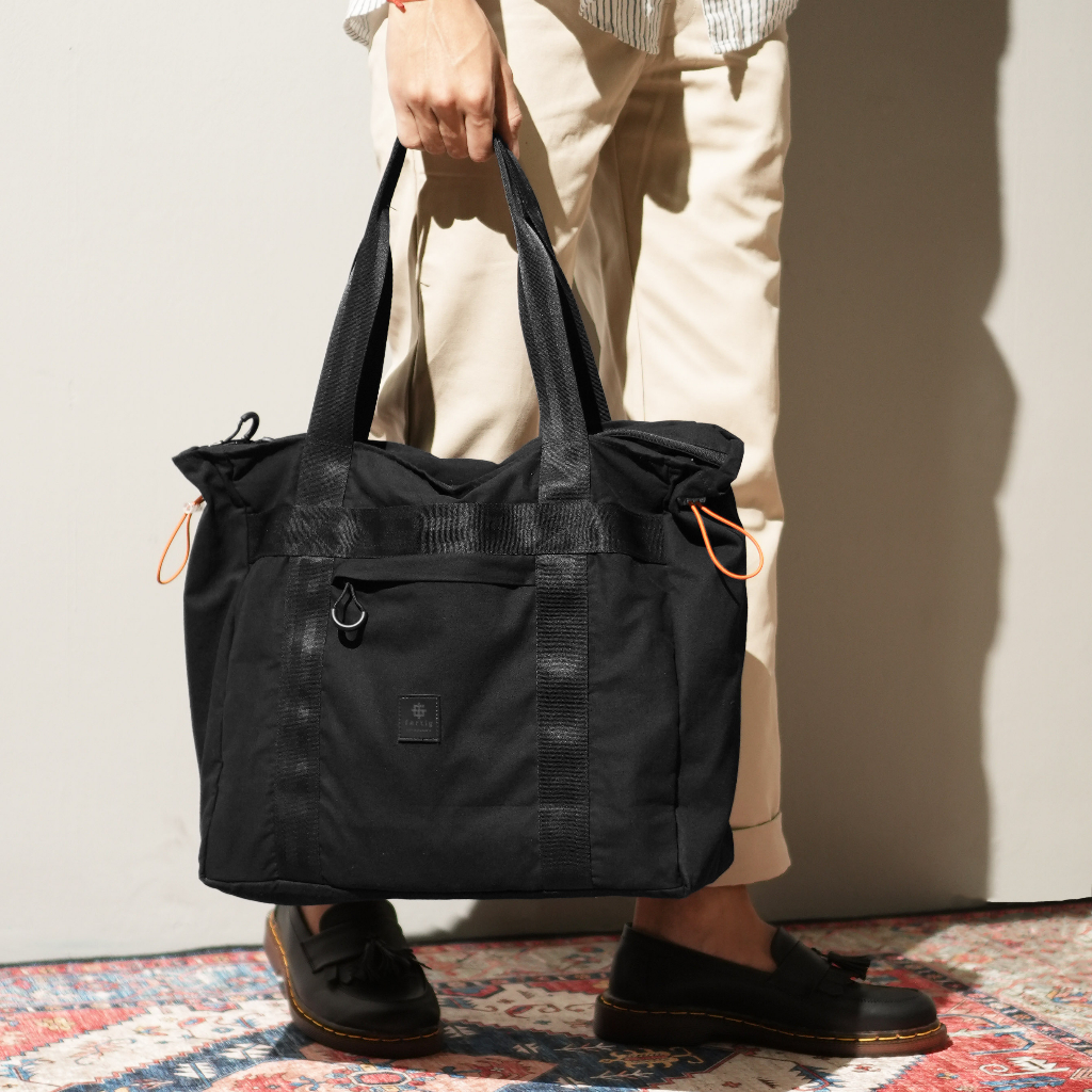 Fertig - Odessa Black Tote Bag - Tas Jinjing Canvas Pria/Wanita - Kompartemen Luas Muat Laptop 15,5"