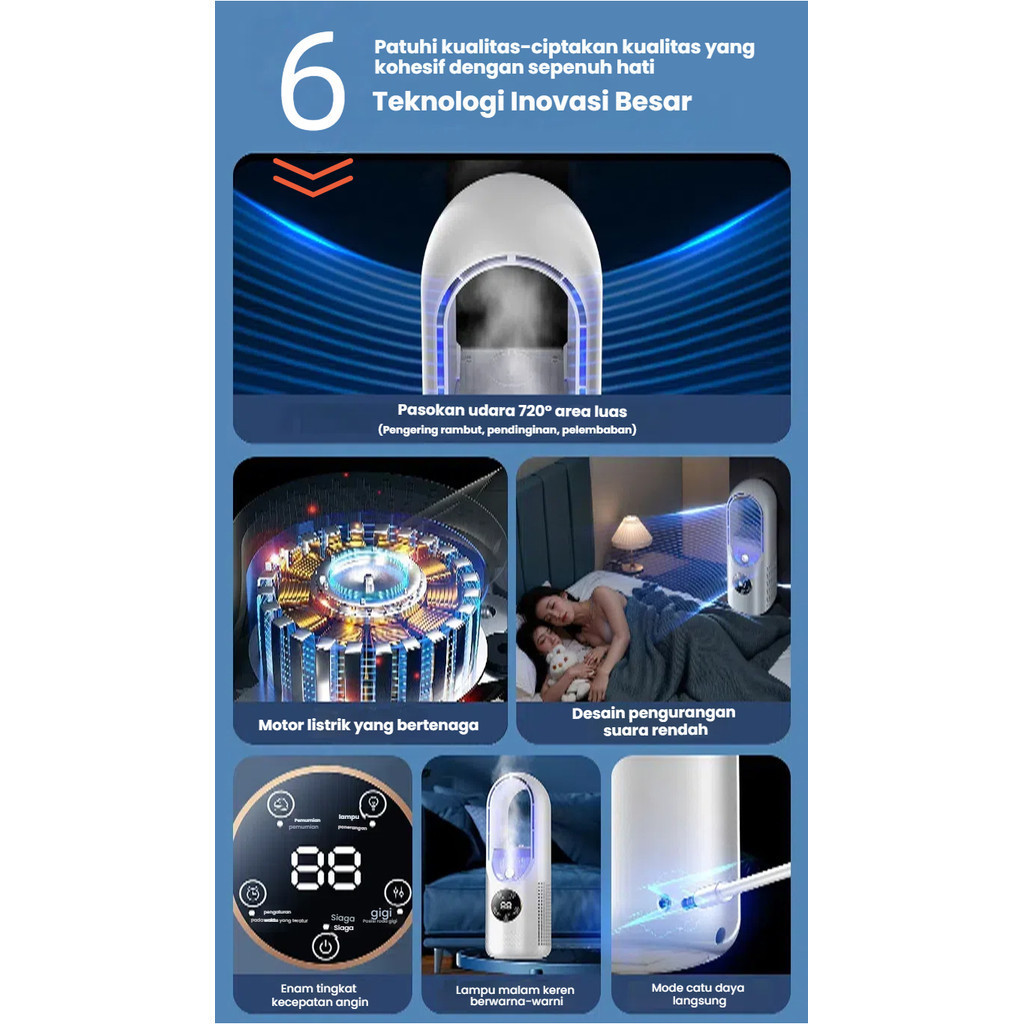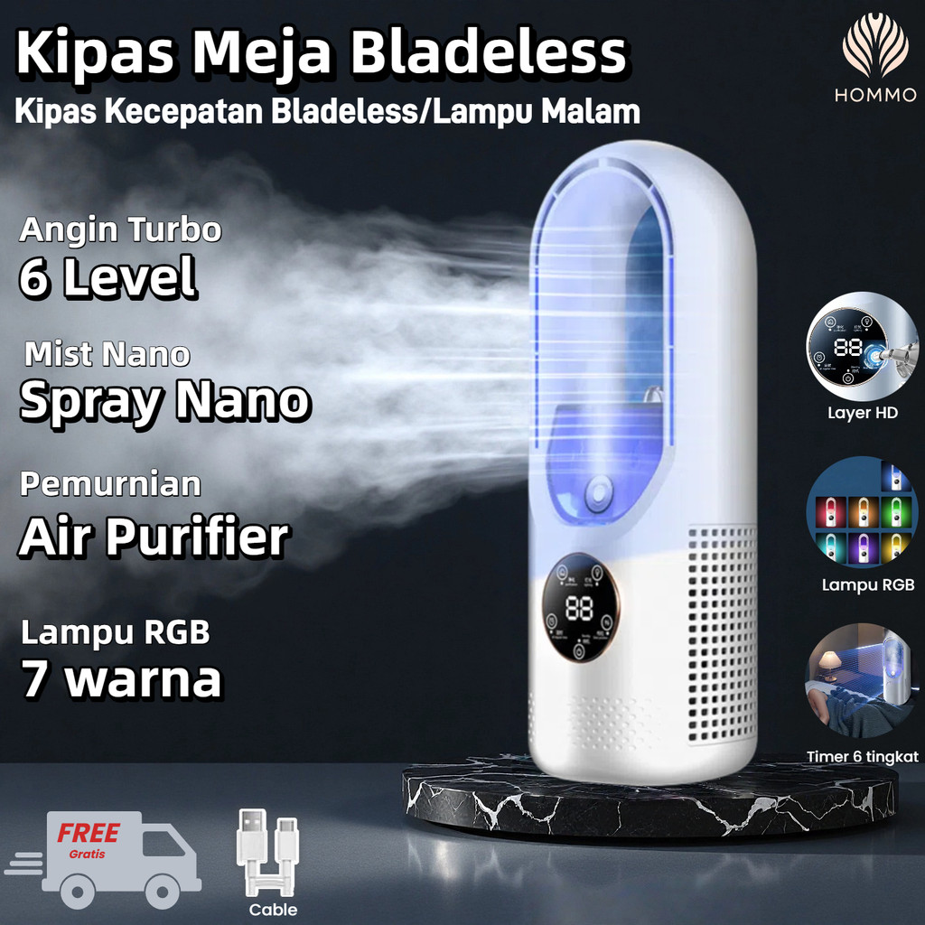 HOMMO Kipas Mini Meja Air Cooler Bladeless|Kipas Humidifier 3in1|Kipas Aromaterapi + Pencahayaan LED + Pendingin Es|Desa