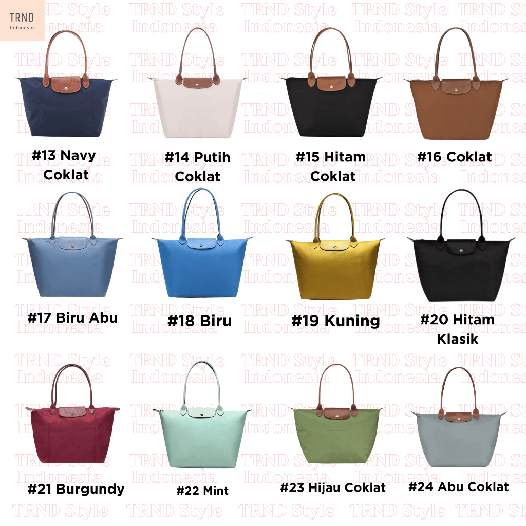 Navy Coklat, Coklat, Hitam Coklat, Hijau Coklat, Putih Coklat, Abu Coklat, Abu Terang Coklat, Pink Barbie, Pink Coklat, Burgundy Coklat, Khaki Coklat, Khaki Tua Coklat, Kuning Coklat, Hitam, Putih, Navy, Pink Muda, Pink, Pink Tua, Navy Klasik, Hijau Army, Nude, Hijau Klasik, Mocca, Oren, Biru, Kuning, Biru Abu, Hitam Klasik, Burgundy, Mint, Khaki, Abu Oren, Abu Klasik, Biru Muda Klasik