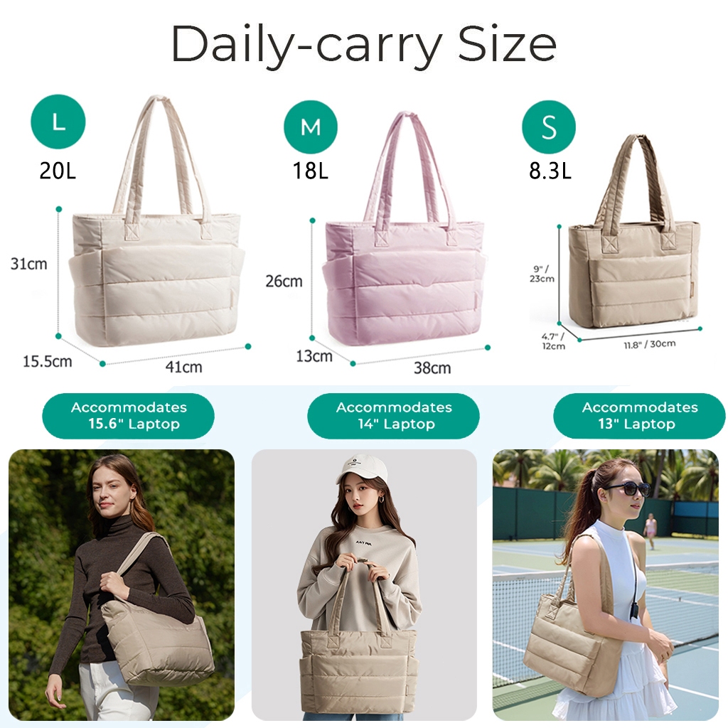 BAGSMART Tas Wanita Tote Bag Lightweight Puffy Tas Kuliah Tote Bag for Travel Work Beach
