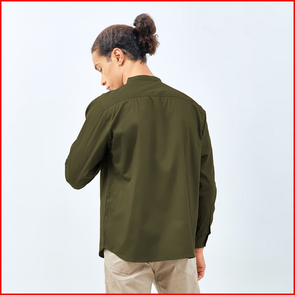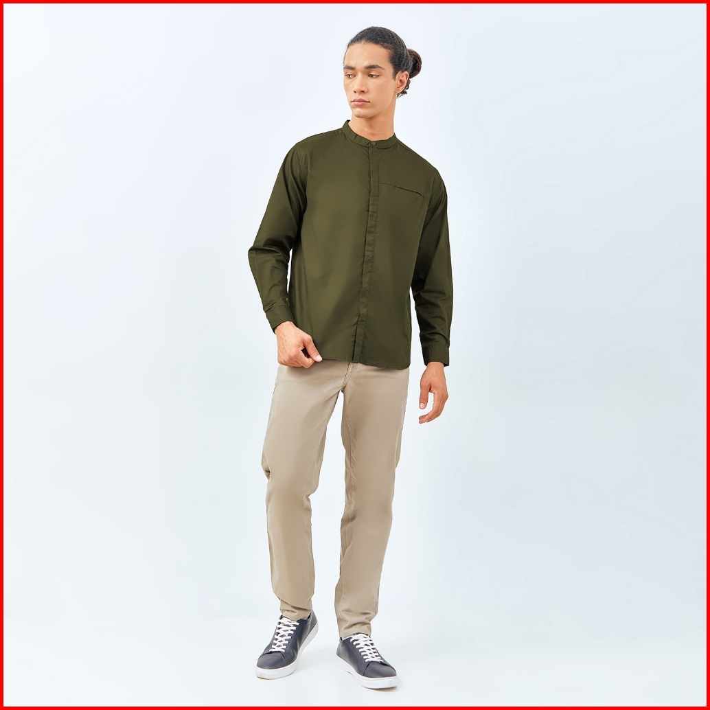 M231 Kemeja Pria Koko Shanghai Polos Soft Twill Panjang Army 1971k
