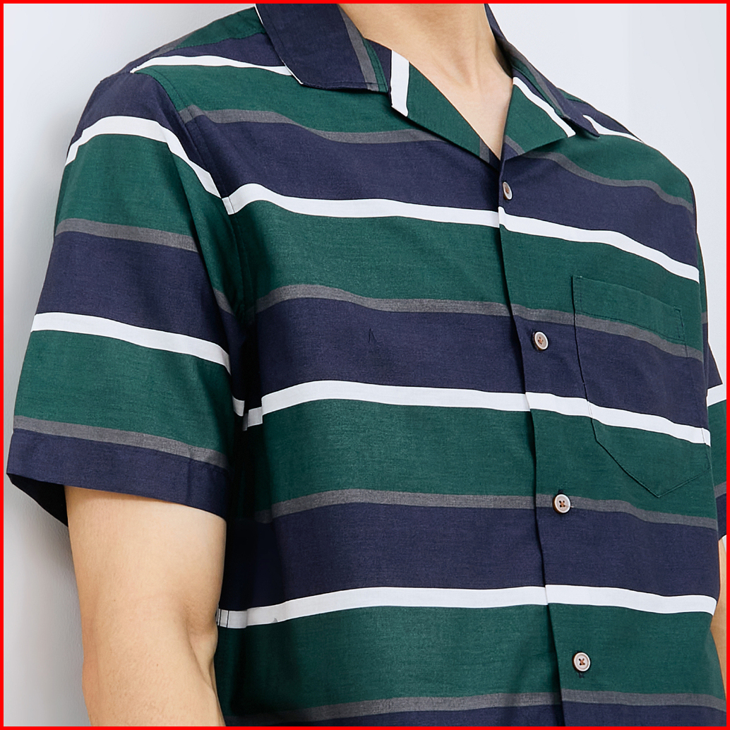 M231 Kemeja Pria Stripe Hawaii Pendek Navy 3169b