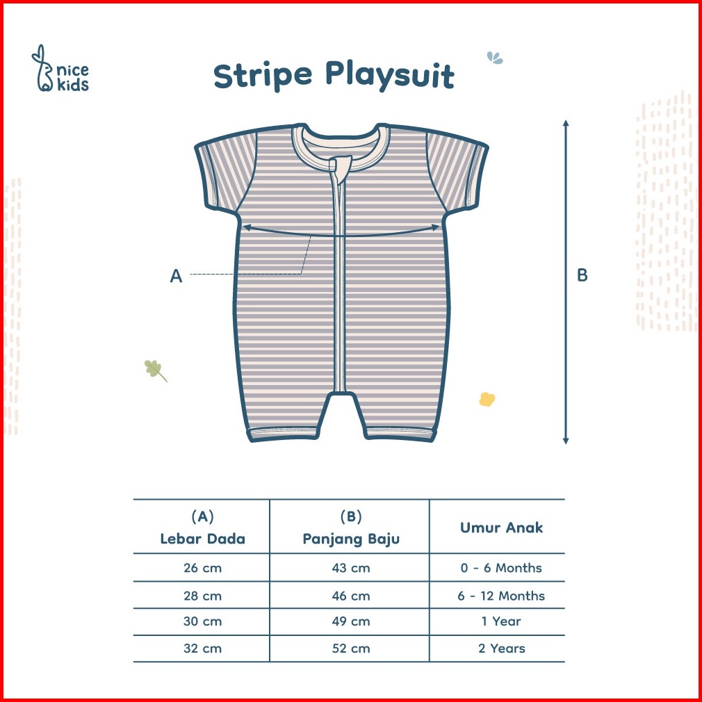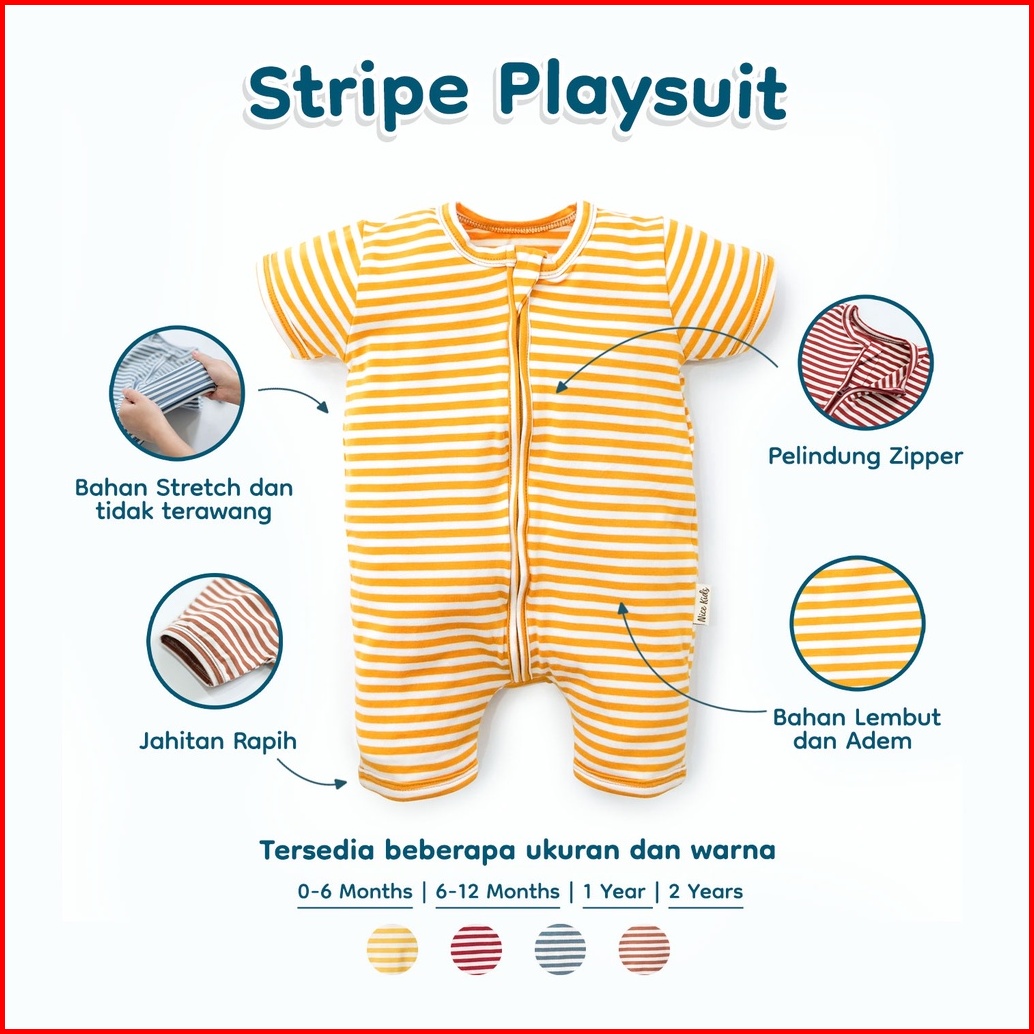 Nice Kids - Stripe Playsuit Baby Baby Jumper Romper Onesies Bayi Baju Terusan 0-2 Tahun