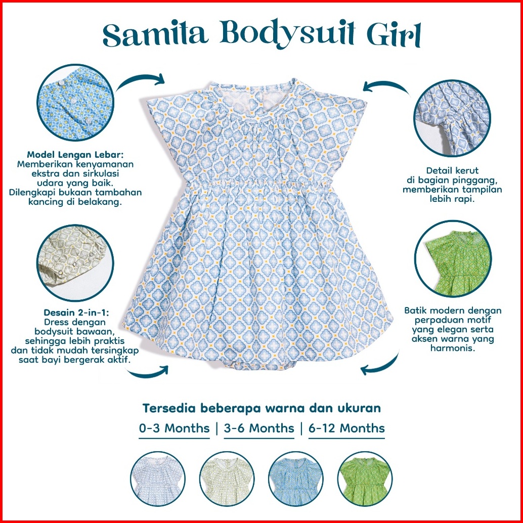 Nice Kids Samita Bodysuit Dress Batik Jumper Dress Bayi Baju Lebaran Bayi Motif Ruffle 0-12 Bulan