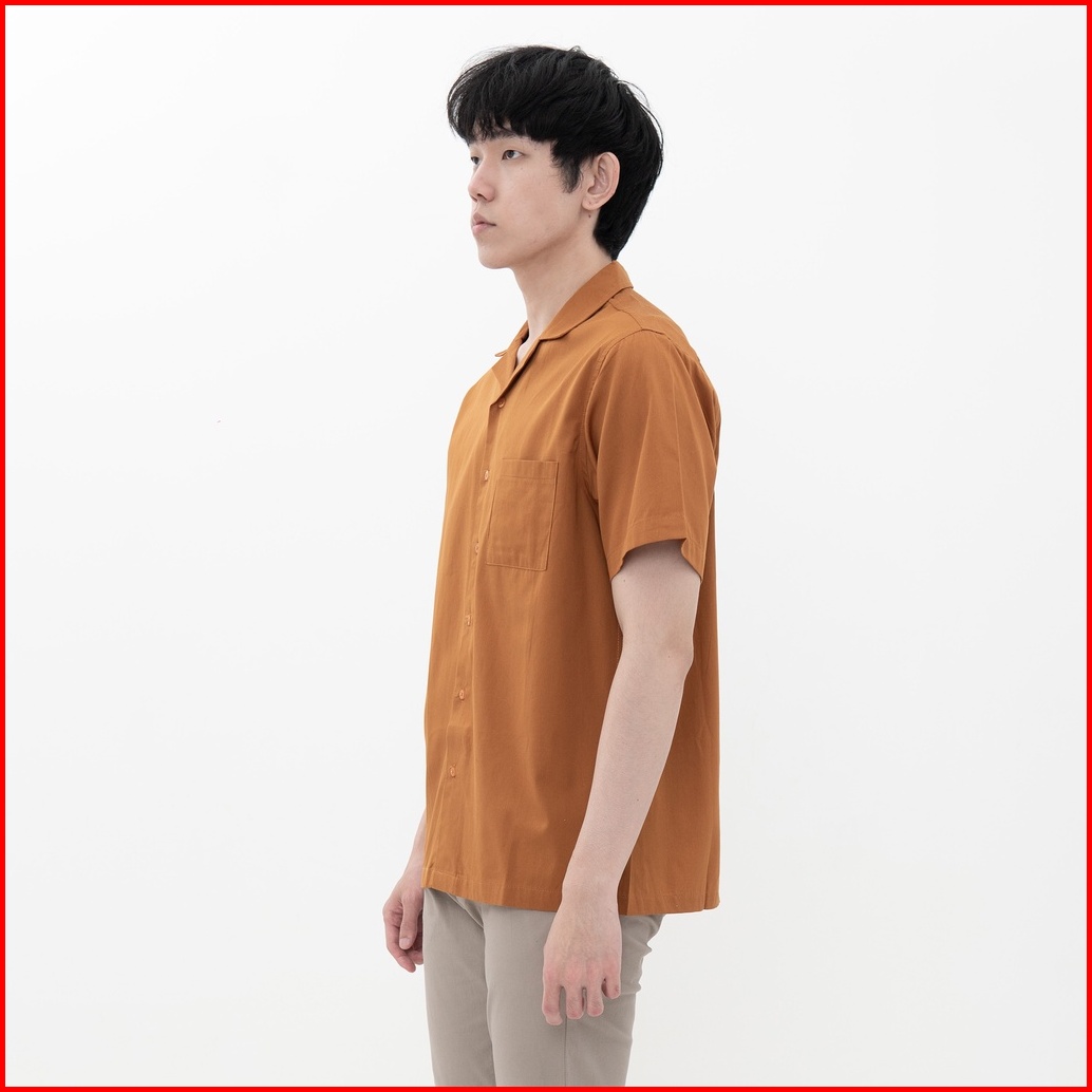 M231 Kemeja Pria Basic Polos Hawaii Oversized Pendek Mustard 2190h