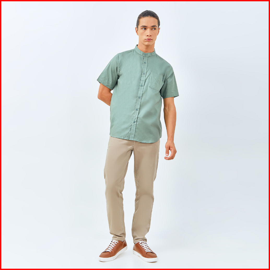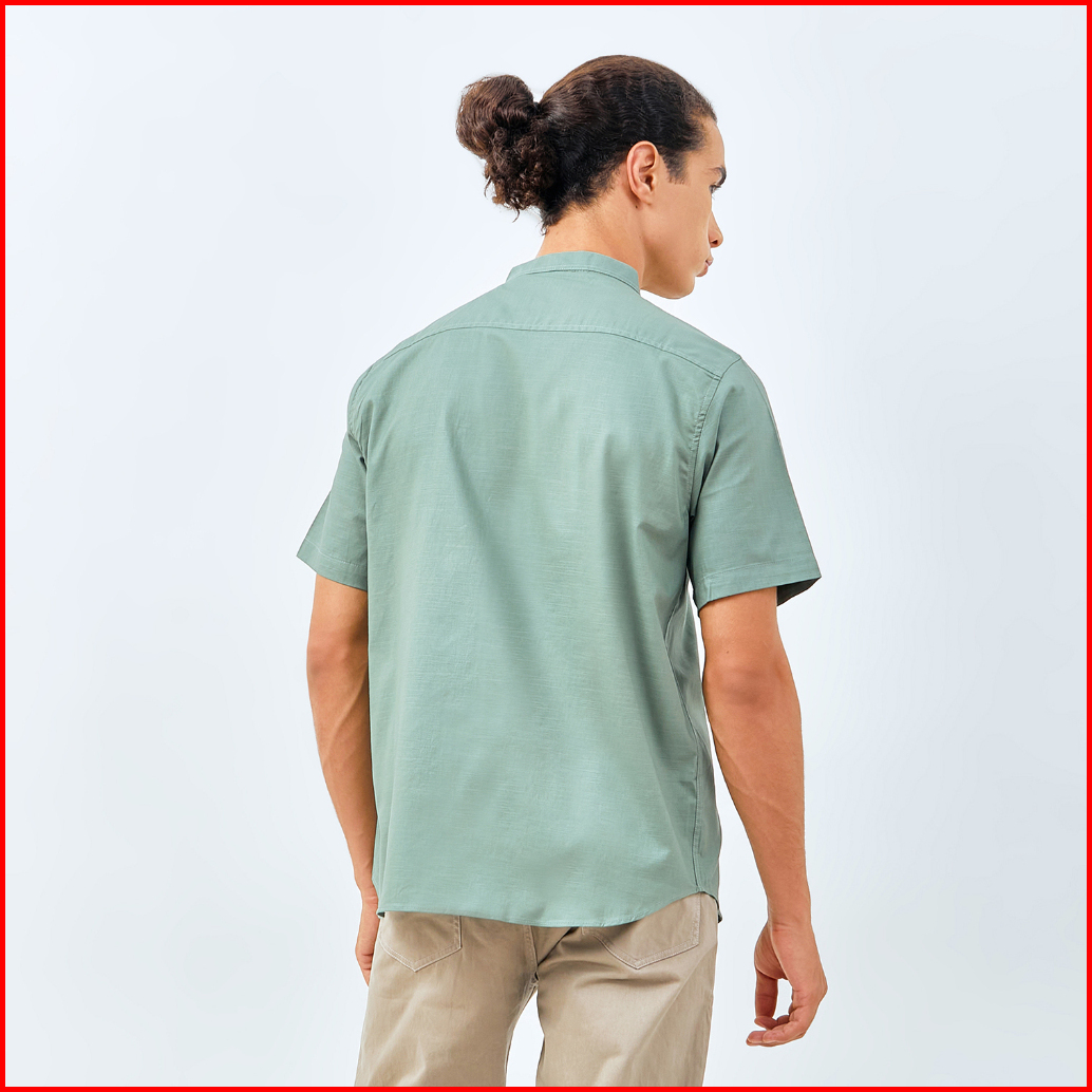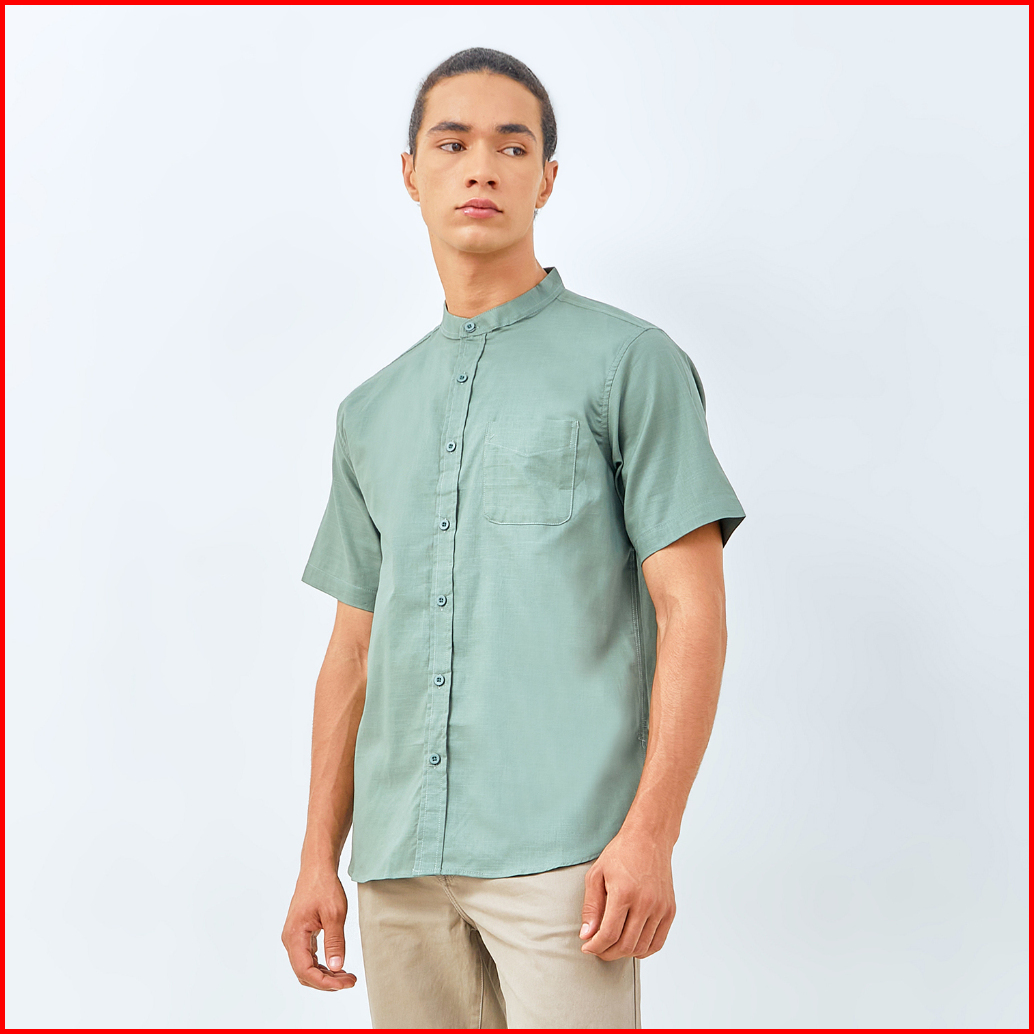 M231 Kemeja Pria Koko Shanghai Polos Pendek Hijau 0184d