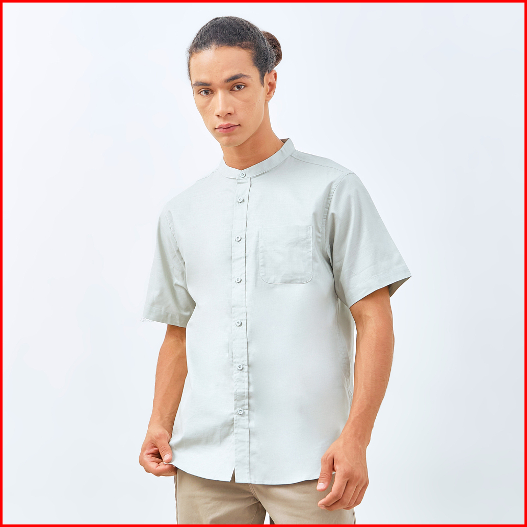 M231 Kemeja Pria Koko Shanghai Polos Pendek Mint 0184e