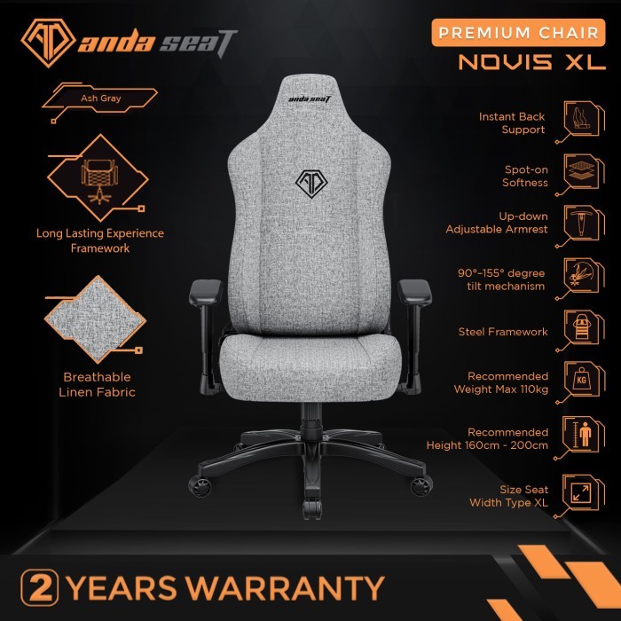 AndaSeat Novis XL Series Best Budget Ergonomic Gaming Chair - Ash Gray