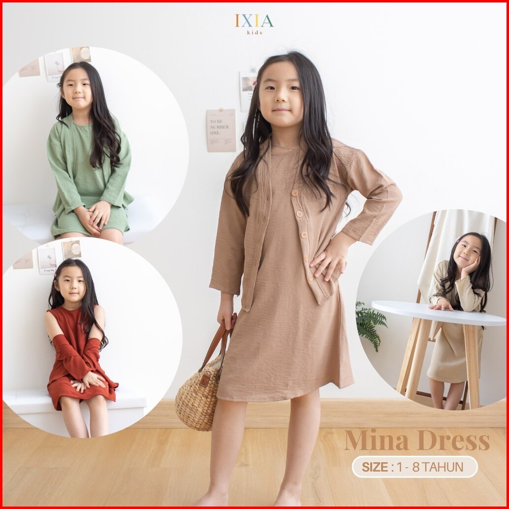 Ixia Kids Bianca Dress Baju Dress Cardigan Anak Perempuan 1-8 Tahun
