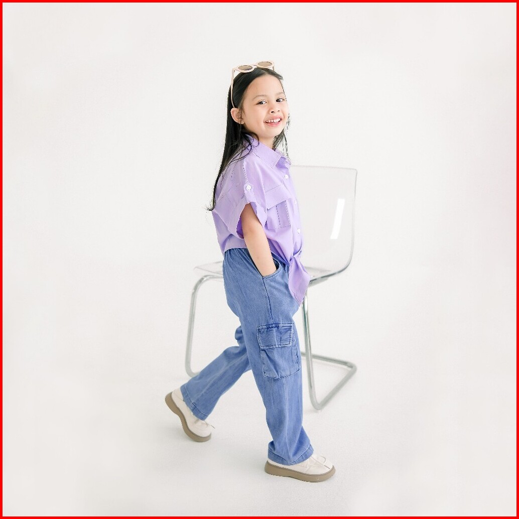 Little Me - Celana Cargo Jeans Anak Perempuan Yoona Cargo Jeans Usia 6 Bulan - 8 Tahun