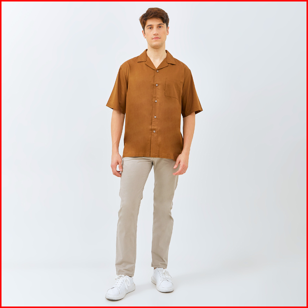 M231 Kemeja Pria Basic Polos Hawaii Oversized Pendek Coklat 2190k