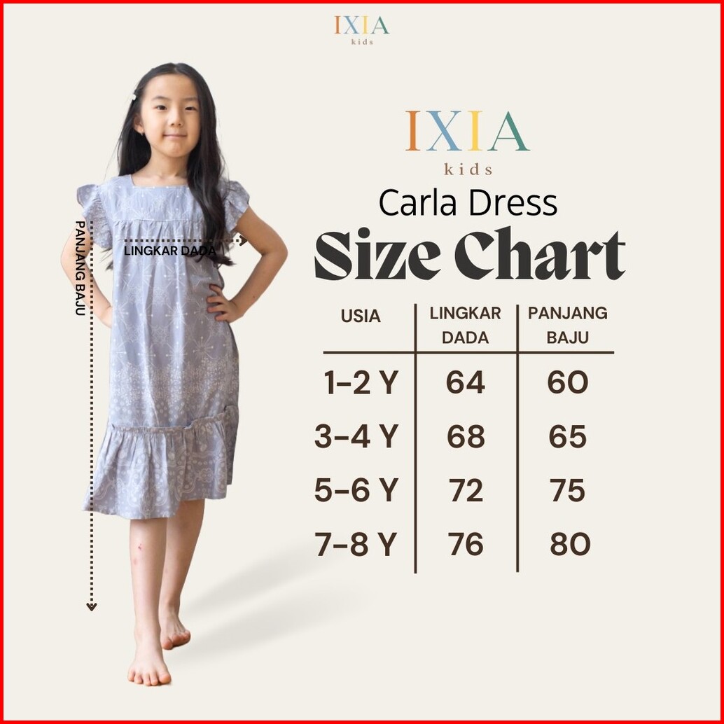 Ixia Kids Carla Dress Dress Anak Perempuan 1-8 Tahun