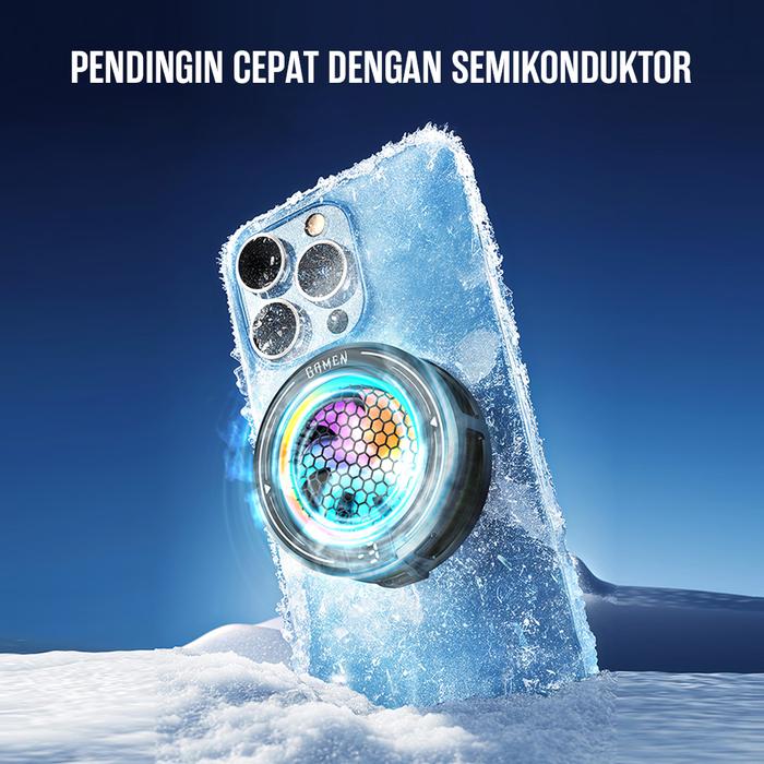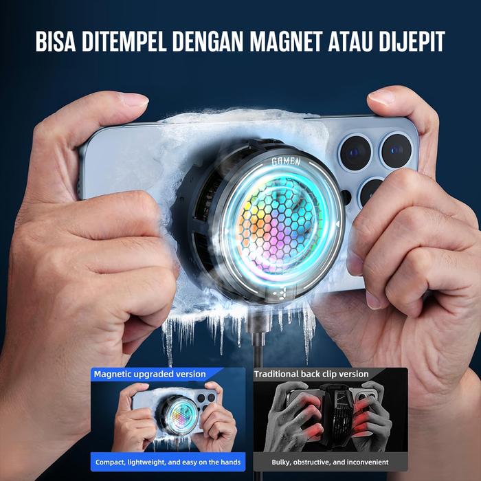 Gamen Gmr09 Fan Cooler Hp Gaming Magnetic Rgb Dengan Klip Penjepit Dan Heatsink Magnetic Original - Garansi 1 Tahun - Gm