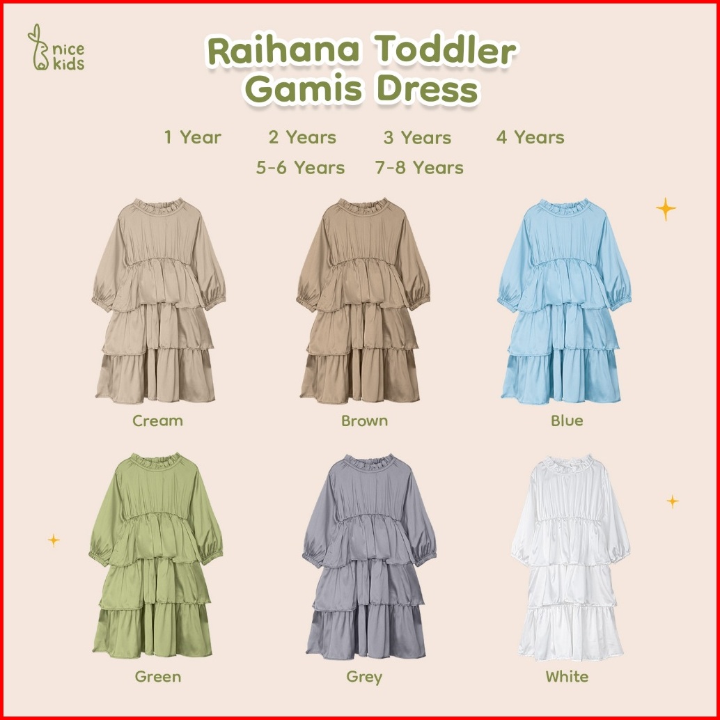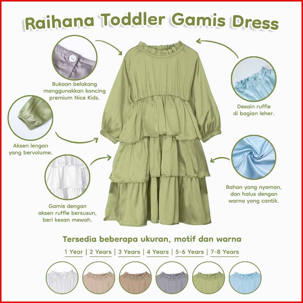 Nice Kids - Raihana Kids Terusan Gamis Lebaran Dress Size 1-8 Tahun Baju Anak Perempuan Baju Muslim Sarimbit Dress Anak
