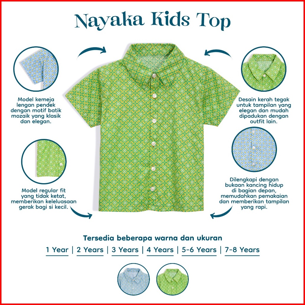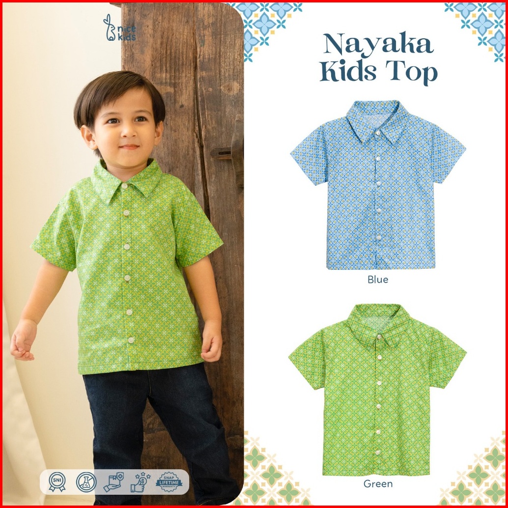 Nice Kids Nayaka Toddler Boy Batik Kerah Baju Atasan Anak Laki-laki Baju Bermotif Batik Baju Lebaran Atasan 1-8 Tahun