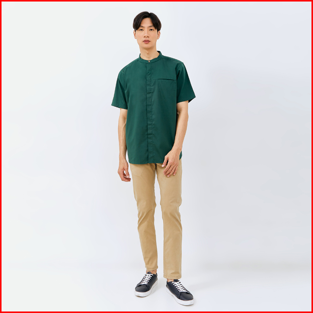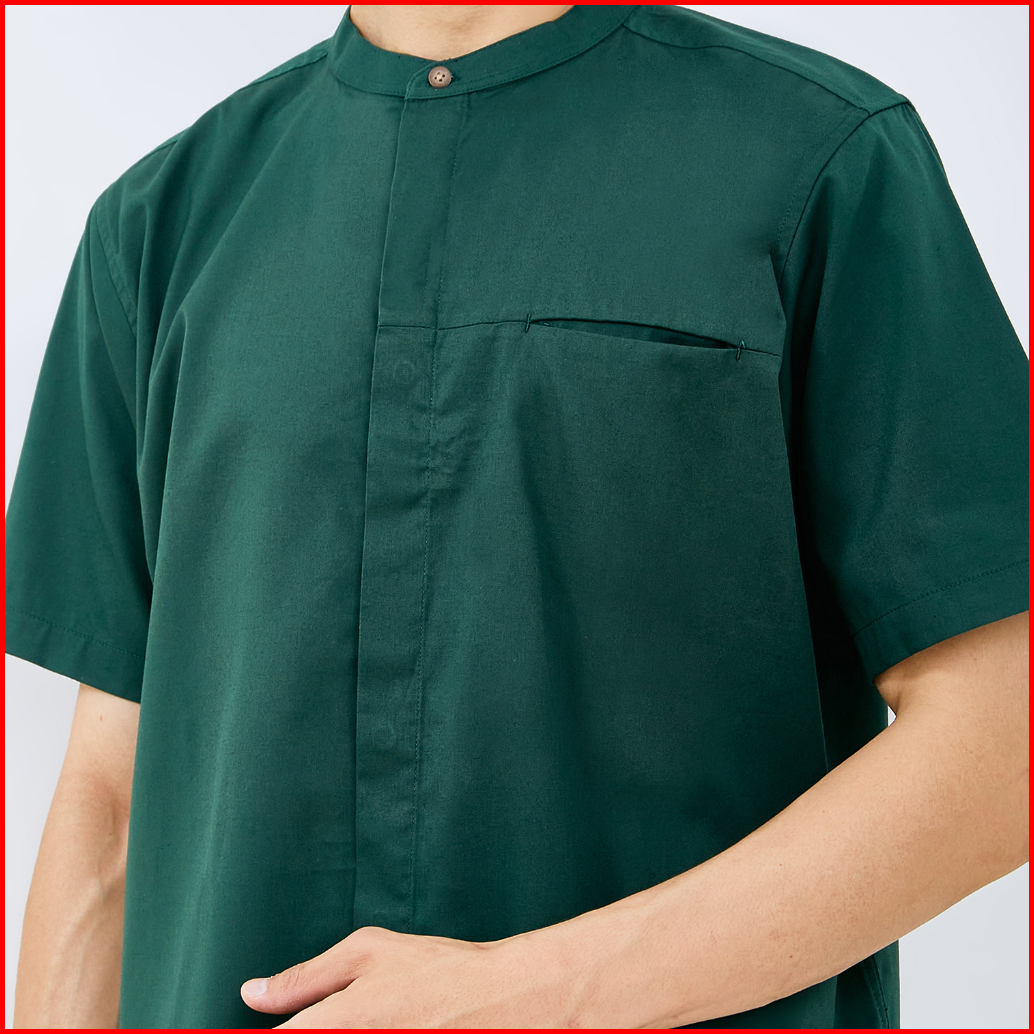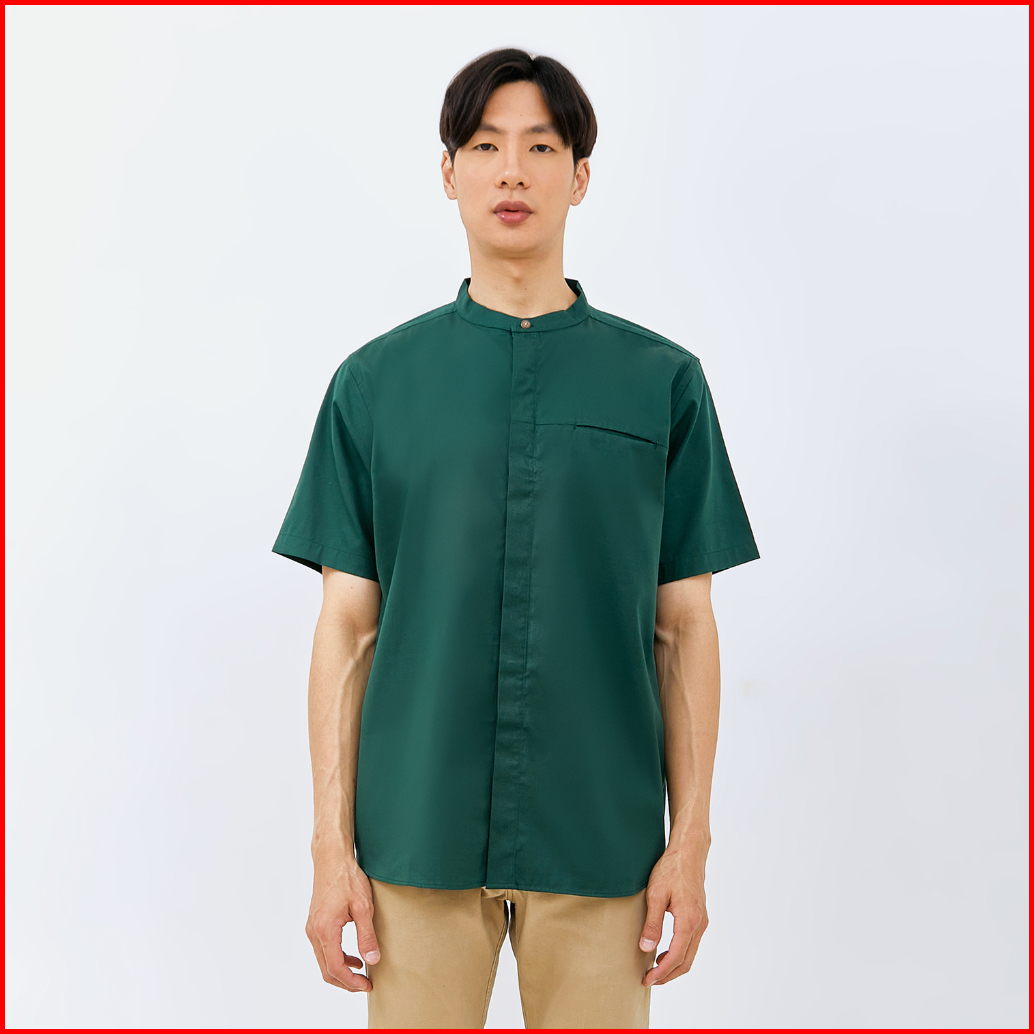 M231 Kemeja Pria Koko Shanghai Polos Pendek Hijau 1972b