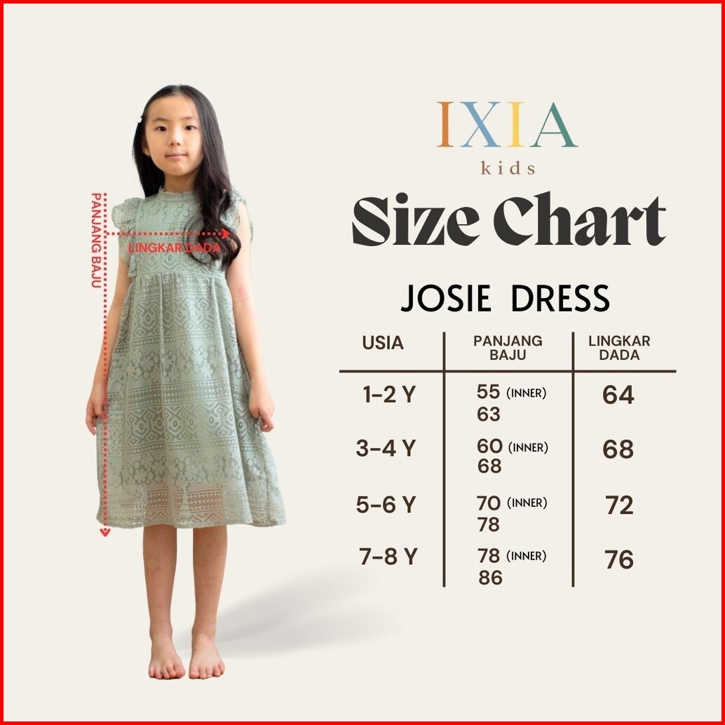 Ixia Kids Josie Dress Baju Dress Anak Perempuan 1-8 Tahun