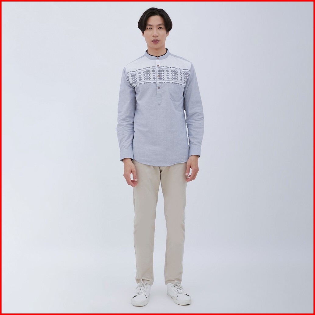 M231 Kemeja Pria Koko Panjang Abu 1581