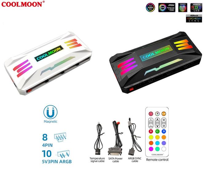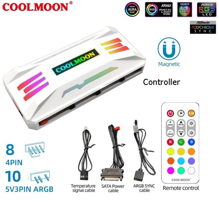 Coolmoon Rgb Fan Controller + Remote 4Pin Pwm + 3Pin 5V Argb - Slim Hitam