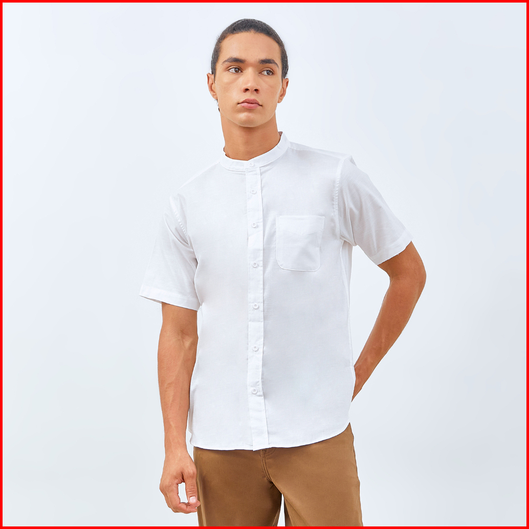 M231 Kemeja Pria Koko Shanghai Polos Pendek Putih 0184j
