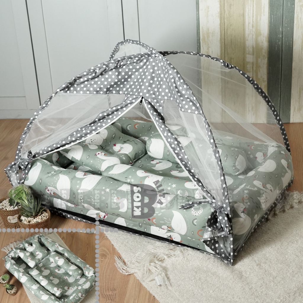 KASUR BAYI TENDA KELAMBU / KASUR BABY KELAMBU SET BANTAL FREE BANTAL PEYANG CROWN + 2 GULING BABY