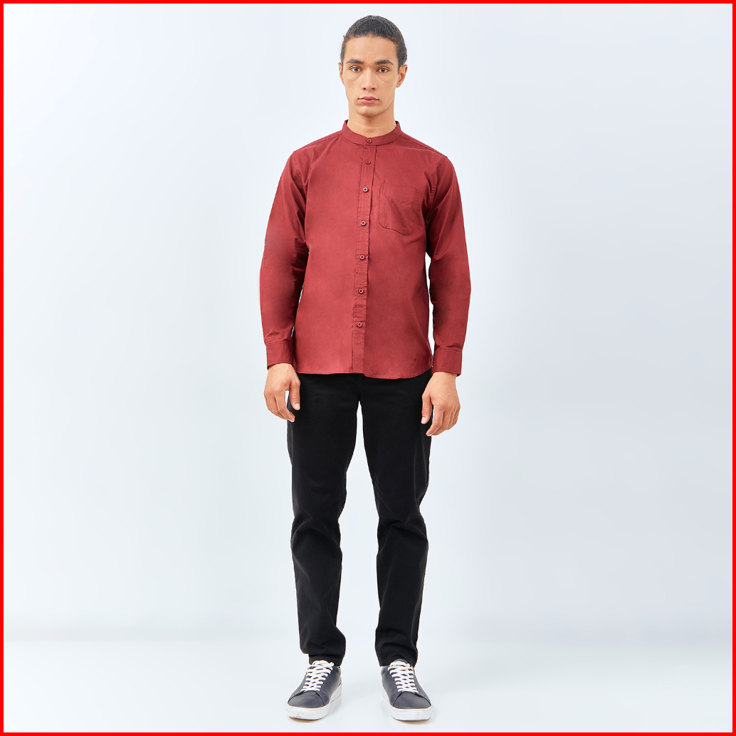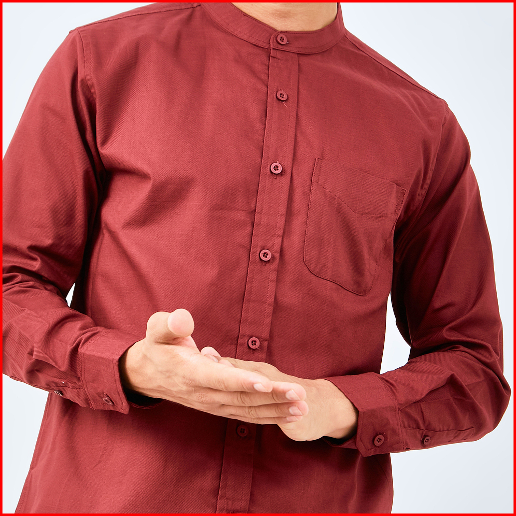 M231 Kemeja Pria Koko Shanghai Polos Panjang Maroon 0185i