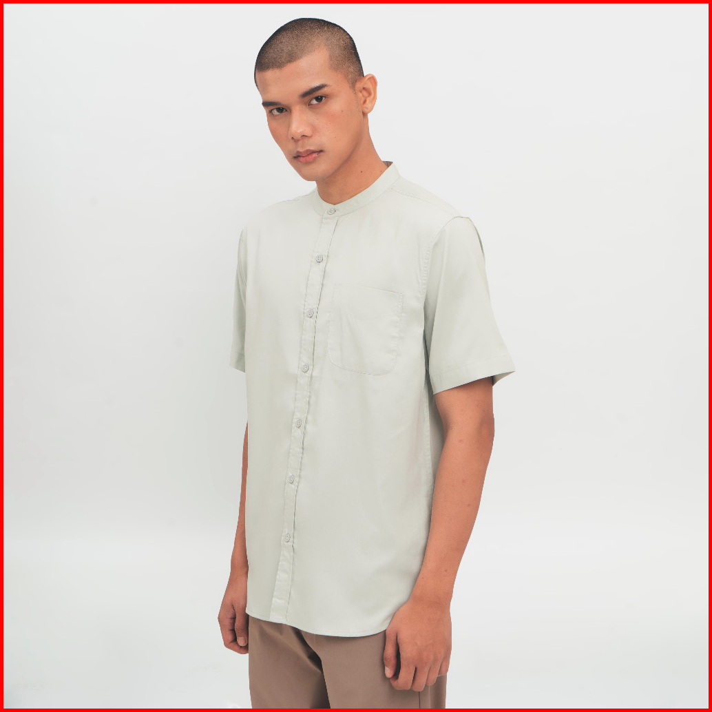 M231 Kemeja Pria Koko Shanghai Polos Pendek Hijau Mint 0914c
