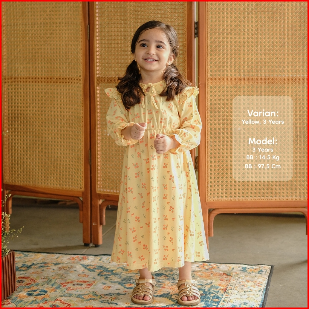 Nice Kids - Yasmeen Ruffle Dress Toddler Girl Size 1-8 Tahun Terusan Anak Perempuan Baju Lengan Panjang Dress Bunga